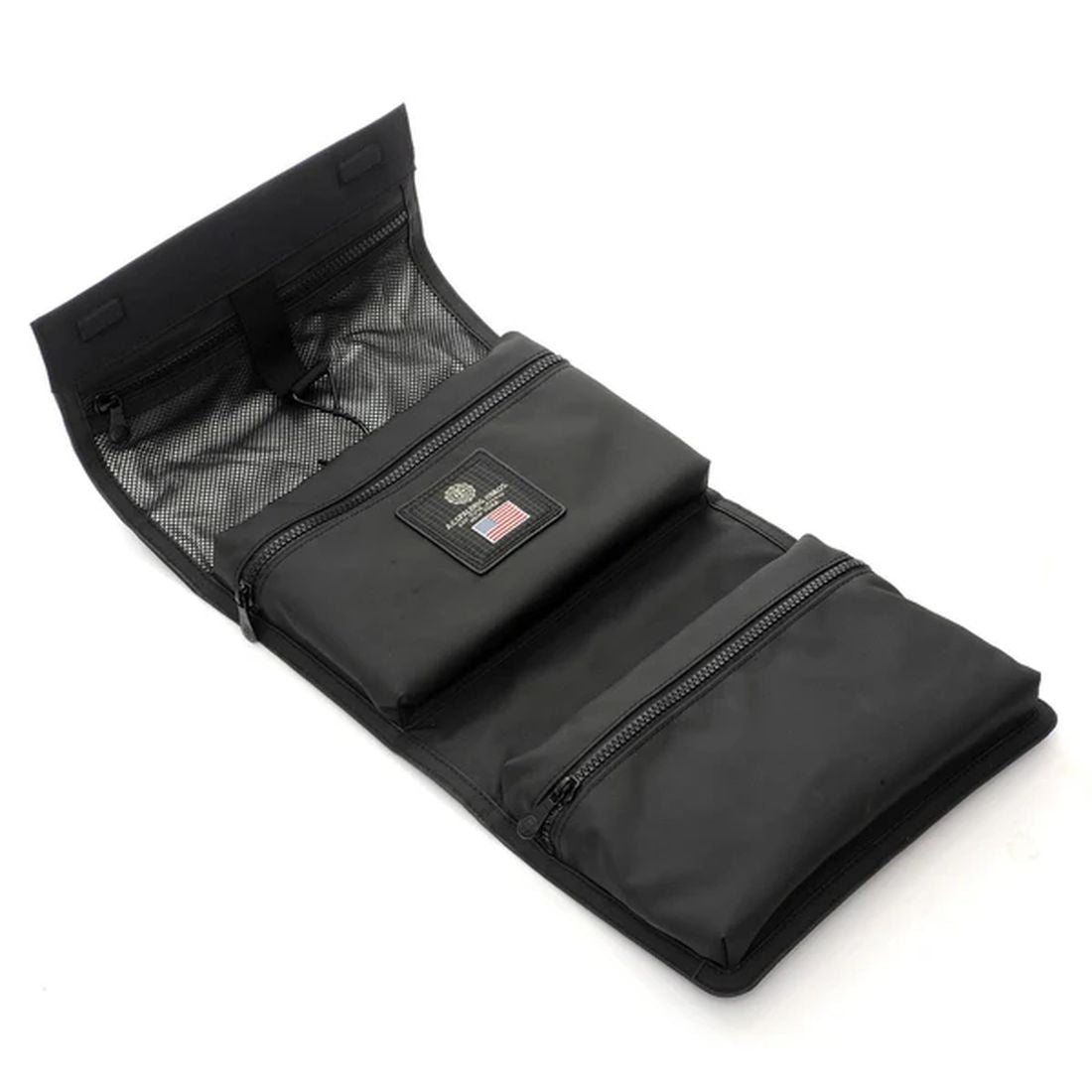 Il design roll-top permette di aprire completamente la parte superiore, facilitando l’accesso al contenuto e offrendo una struttura capiente ma compatta. Realizzato in nylon gommato resiste all'acqua e agli urti, all’interno scomparti e tasche organizzate per pennelli, cosmetici e piccoli oggetti, con fodera protettiva per evitare macchie esterne.