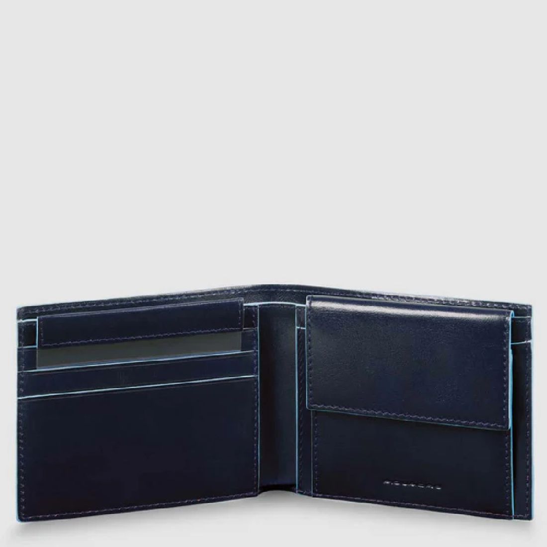 Portafoglio Piquadro della linea Blue Square uomo in pelle con portamonete, portacarte di credito, volantino staccabile e protezione RFID. Cod PU4188B2R-BLU2