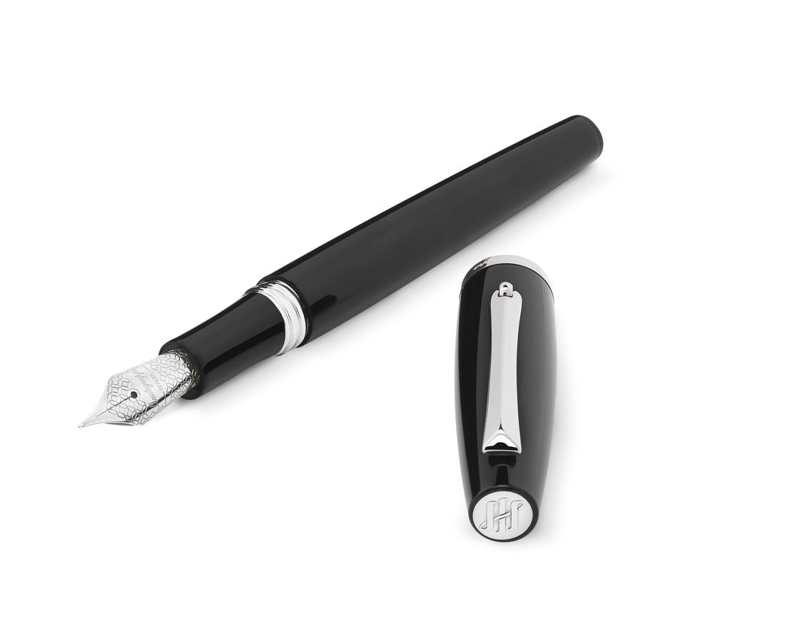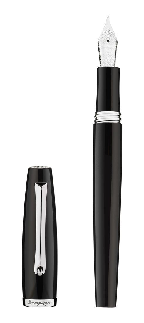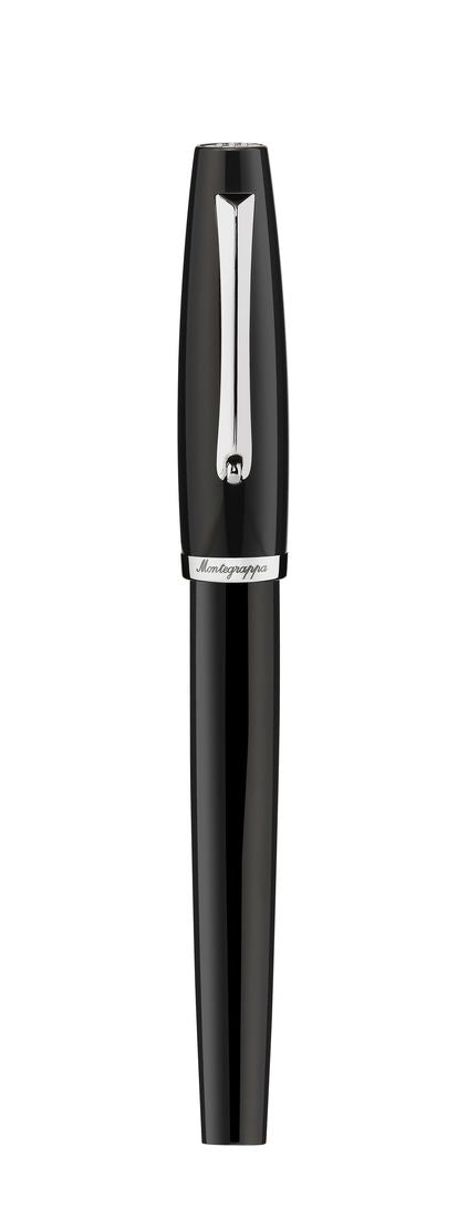 Penna stilografica Montegrappa Palladium della linea Manager in resina nera con minuterie in acciaio inox, logo nel cappuccio. Cod ISMAN_IC