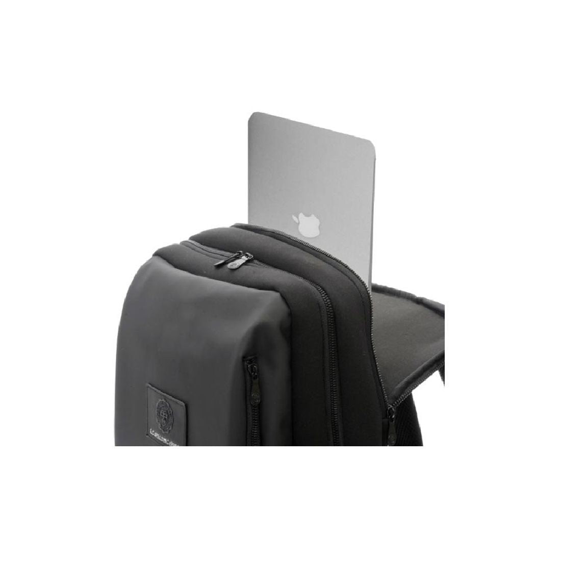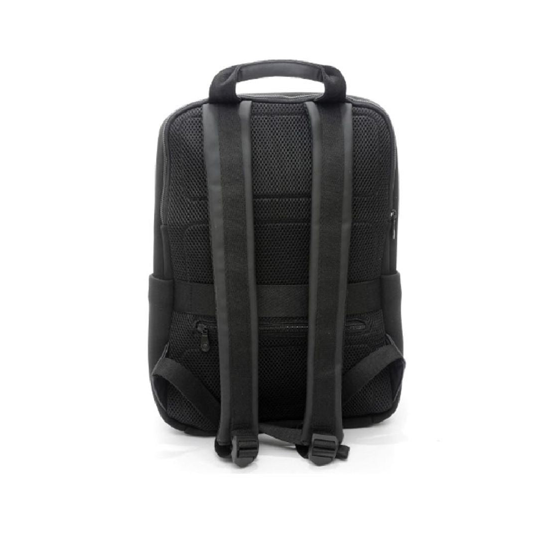 Il design essenziale è arricchito da dettagli funzionali: tasca esterna verticale sul fronte, tasche laterali, uno scomparto centrale con zip a doppio scorrimento dotato di tasche interne. Sul retro, uno scomparto imbottito protegge i laptop fino a 15.6”, mentre il pannello traspirante garantisce comfort. Presenta una fascia per trolley con tasca zippata di sicurezza. Completano il design gli spallacci ergonomici e imbottiti, per il massimo comfort in ogni occasione.