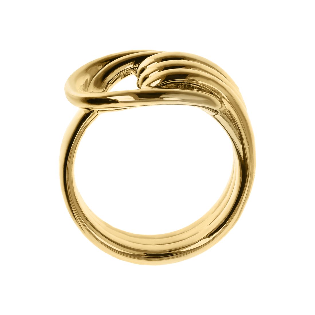 Questo anello Etrusca Gioielli da donna è un accessorio audace e contemporaneo che evoca la forma caratteristica dei battenti da porta, reinterpretati in chiave gioiello, dorato 18kt presenta una fascia dal profilo solido e un elemento centrale che agisce come motivo decorativo, simile a un “anello pendente” fisso.