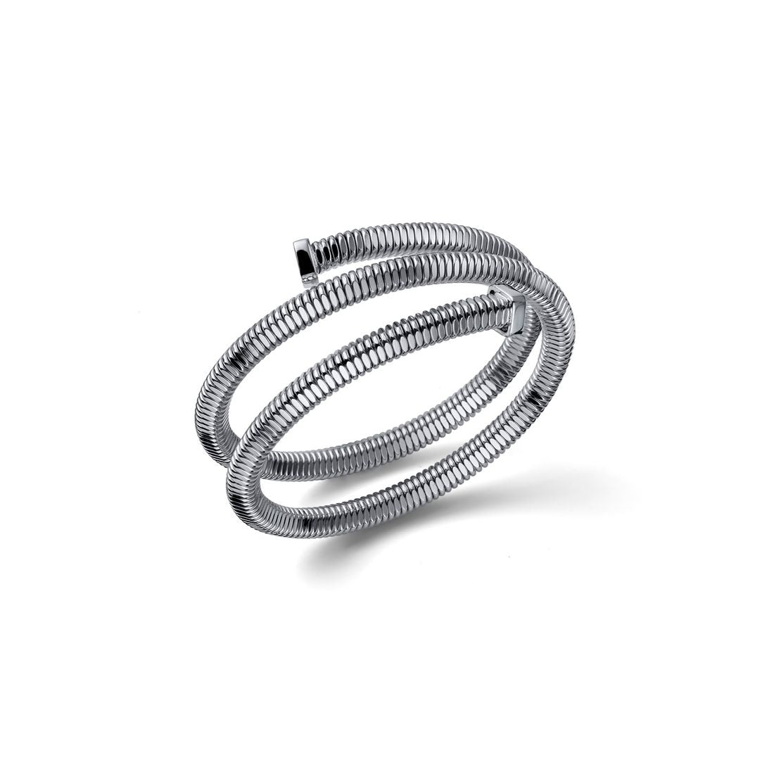 Bracciale da donna Unoaerre contrarié a tre giri con design a vite e raffinata placcatura argento, caratterizzato da linee moderne e da una struttura avvolgente che dona movimento e carattere al gioiello. Il design bold e contemporaneo lo rende un accessorio di grande personalità, perfetto per chi ama distinguersi con dettagli eleganti ma decisi.