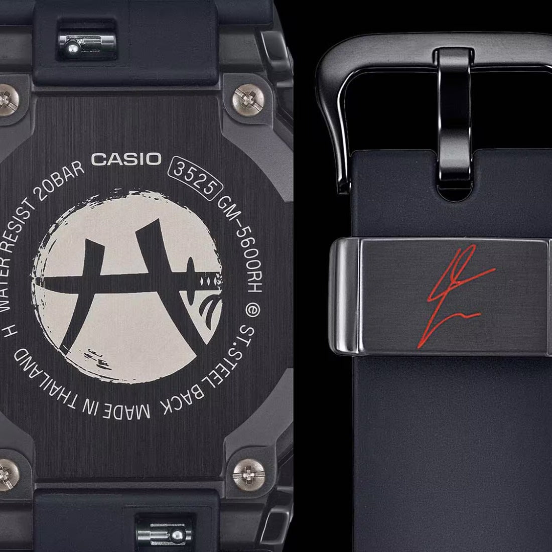 G-SHOCK e Rui Hachimura tornano insieme con il quinto modello firmato! Questa edizione speciale, intensa e resistente, è basata sul GM-5600, caratterizzato dalla distintiva lunetta in metallo. Il potente nero viene ravvivato da accenti rossi vivaci e decisi i colori del brand G-SHOCK  a rappresentare la forza e la determinazione di Hachimura, che continua a superare ogni limite.