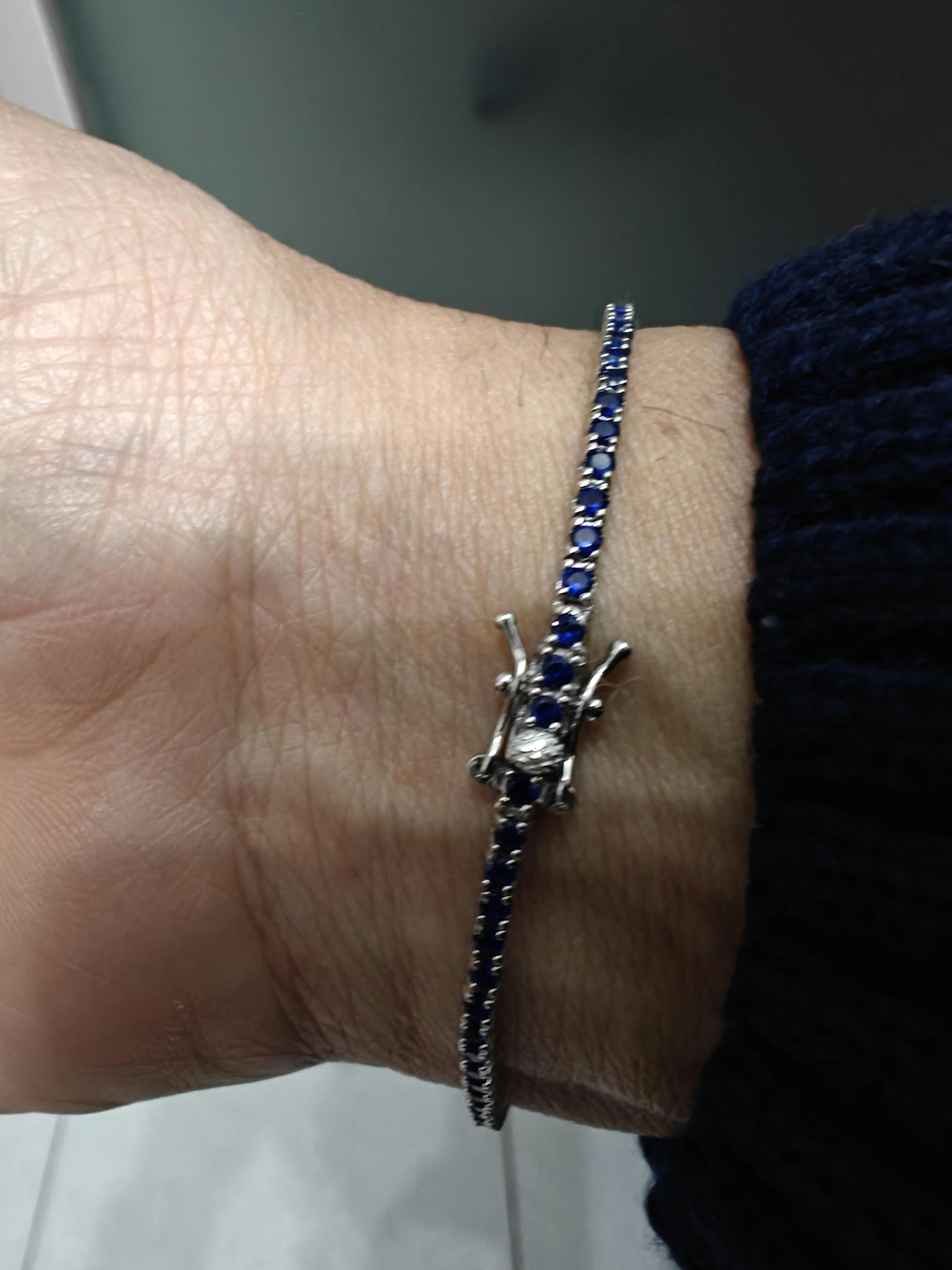 Bracciale tennis del brand Gioielli Comete in argento 925 con griff quadre e zirconi blu da 2mm, chiusura a zeppetta con doppio otto di sicurezza, lunghezza 19cm, cod UBR 995 M19