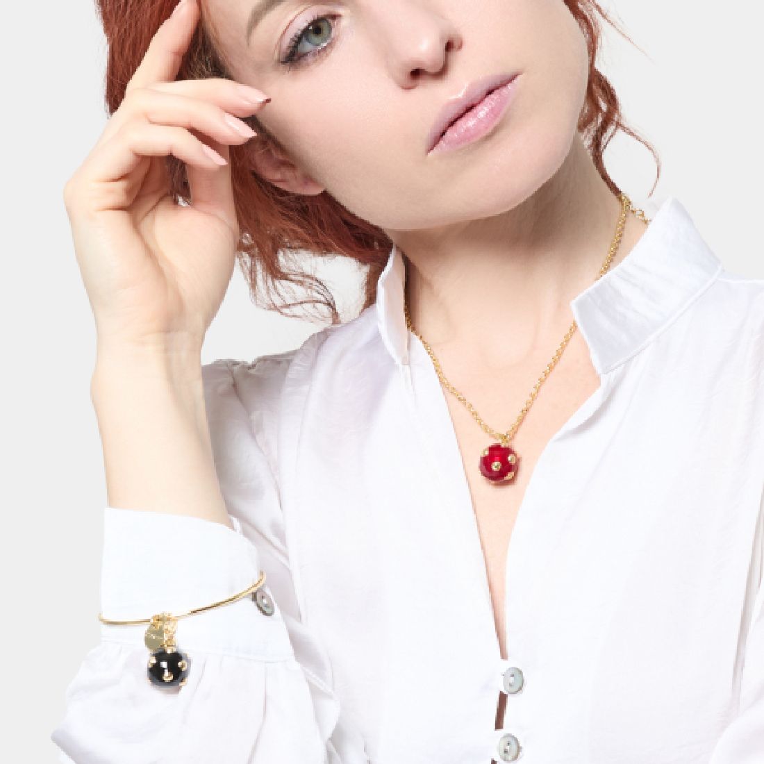 Collana corta da donna Unoaerre in bronzo placcato oro con ciondolo a forma di mina, smaltato bordeaux e chiusura a moschettone, lunghezza 42 cm. Cod 2703