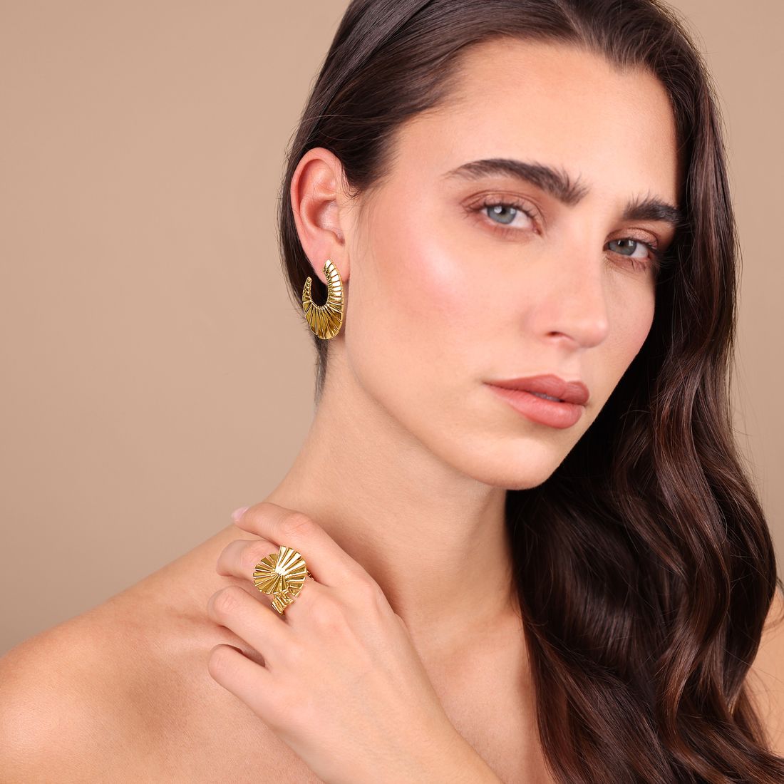 Gli orecchini da donna a cerchio Etrusca Gioielli combinano eleganza pura e artigianalità. Realizzati in lega dorata con finitura placcata oro 18kt presentano una forma allungata che scende con grazia dal lobo, e una superficie martellata che cattura e riflette la luce con un effetto vibrante. Cod WSET00864.YG