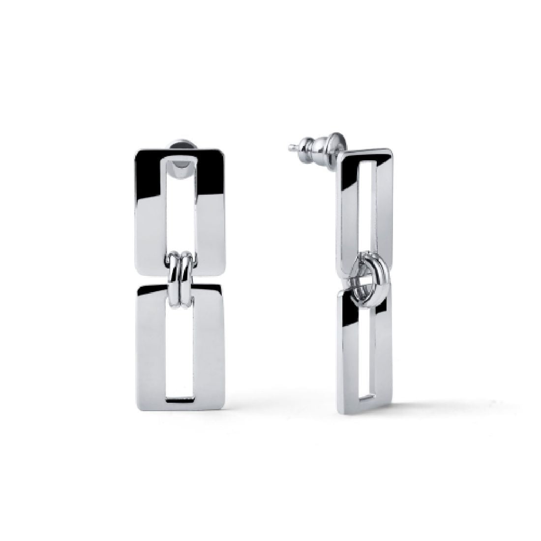 Orecchini pendenti da donna Unoaerre in bronzo placcato argento composti da due maglie piatte in catena rettangolare argentata, con chiusura a farfallina. Il design geometrico e deciso richiama l’estetica grintosa e iconica delle grafiche optical anni ’80. Un accessorio dal carattere forte che valorizza da solo qualsiasi look. Cod 2660