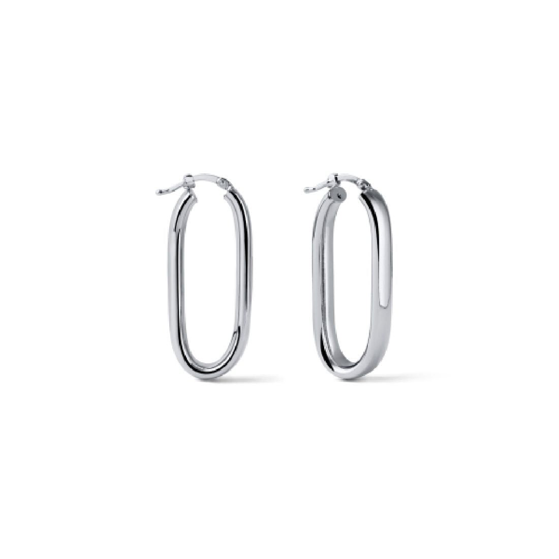 Orecchini a cerchio da donna Unoaerre in bronzo placcato argento con cerchio ovale allungato, chiusura a baionetta. Lunghezza 3,50 cm. Cod 2688