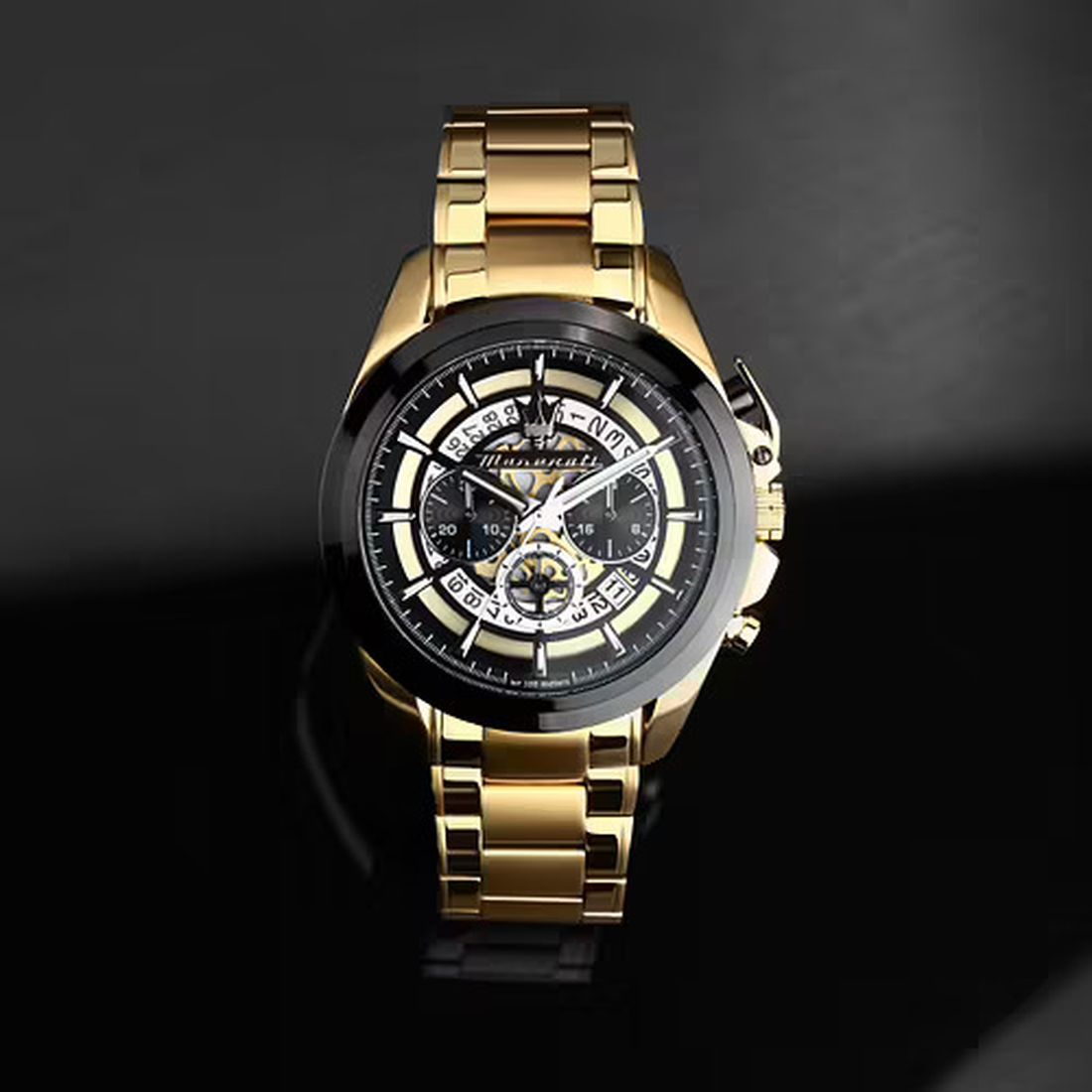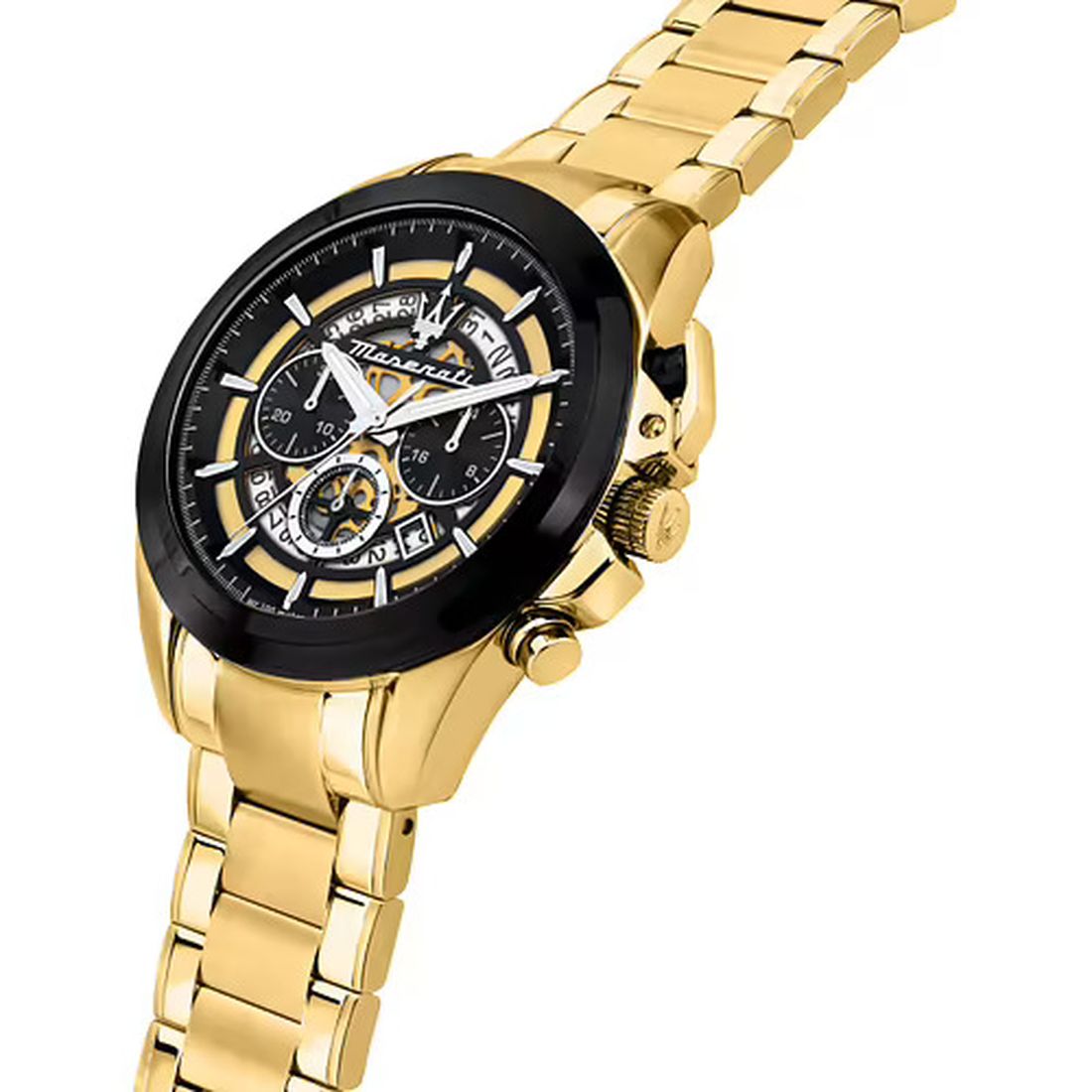 Orologio Maserati Traguardo crono scheletrato in acciaio dorato R8873612058