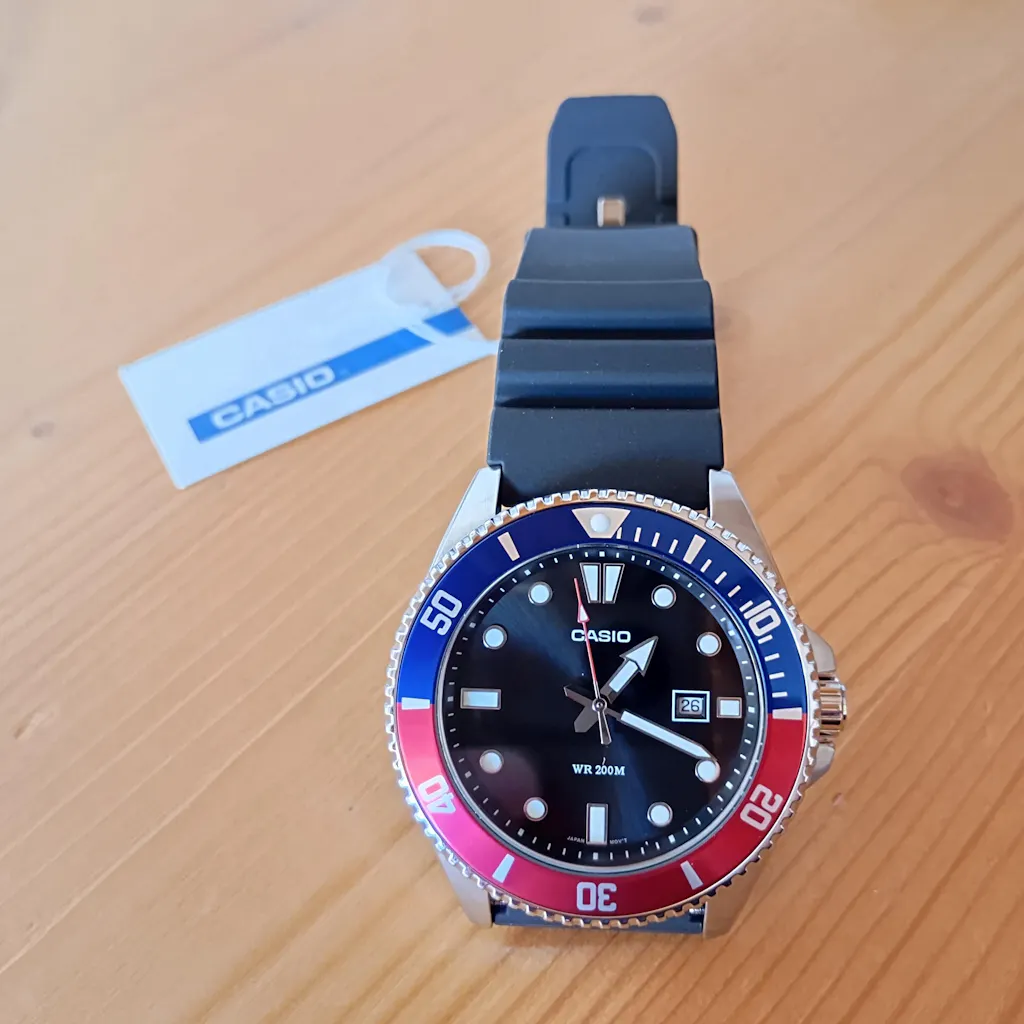 Casio da uomo MDV-107-1A3VEF della linea Duro con quadrante e ghiera girevole pepsi orologio subacqueo resistente fino a 200mt, cassa in acciaio da 44,2 mm