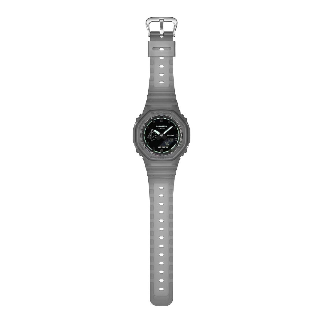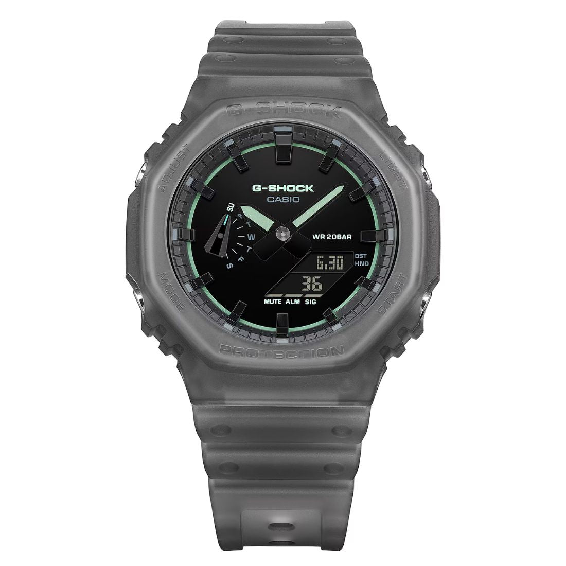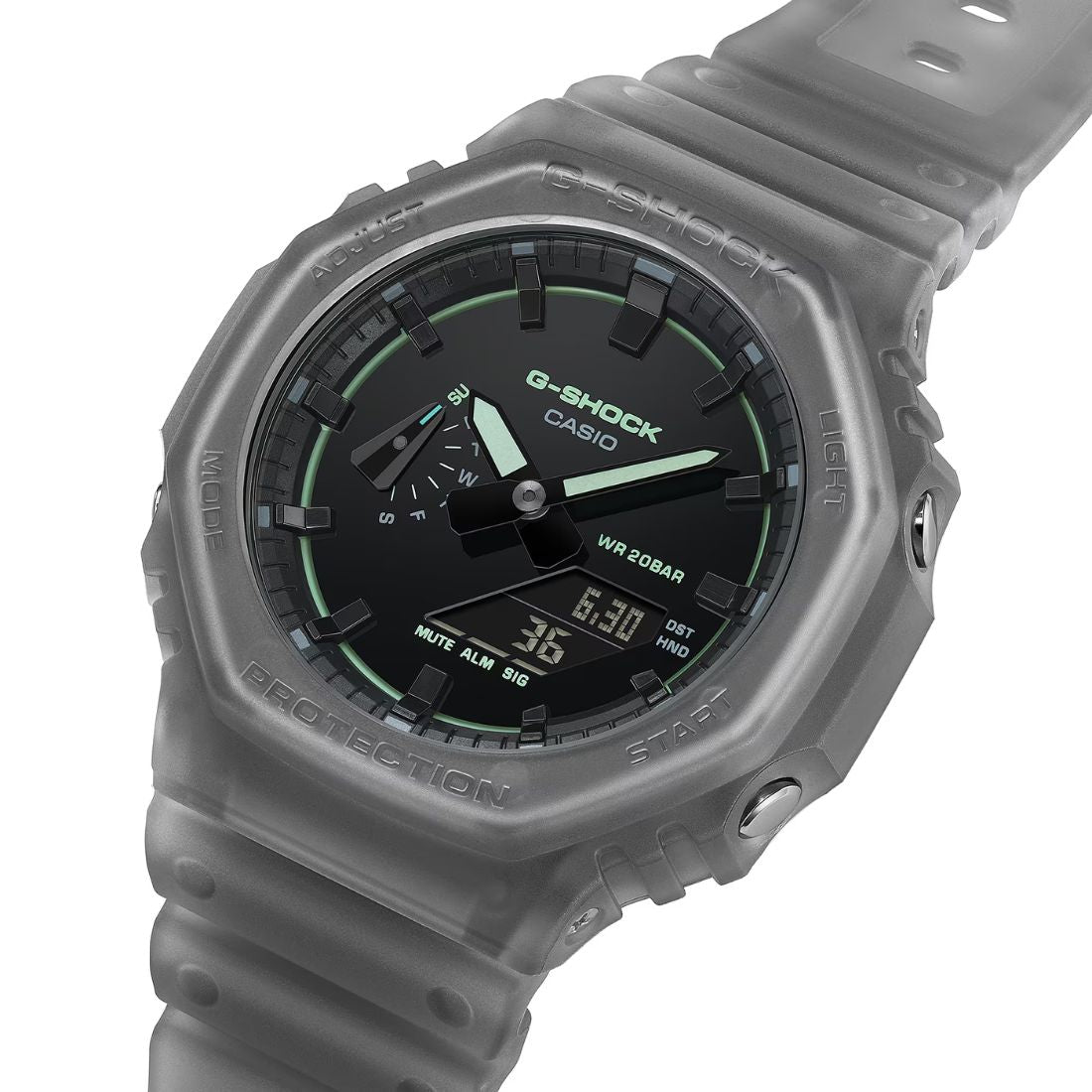 Il carattere distintivo di questo modello continua nel cinturino traslucido con finitura opaca, pensato per evocare la nebbia delle macchine del fumo e offrire una sensazione visiva e tattile completamente nuova. Il risultato è un orologio dal look innovativo, che unisce design all’avanguardia e la leggendaria resistenza agli urti G-Shock.