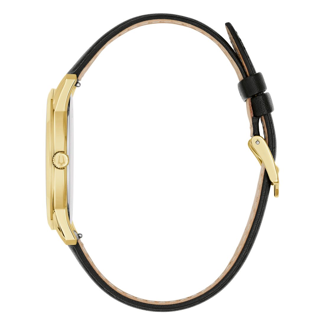 Orologio Bulova da uomo della collezione CLASSIC dallo stile classico e raffinato, pensato come passepartout per ogni occasione. La cassa in acciaio dorato giallo da 40 mm, con lunetta lucida e anse sfaccettate, accoglie un quadrante silver con numeri romani alternati a indici e datario a ore 3. Completa il design un elegante cinturino in pelle nera con chiusura ad ardiglione.