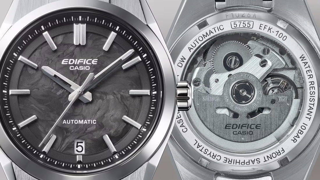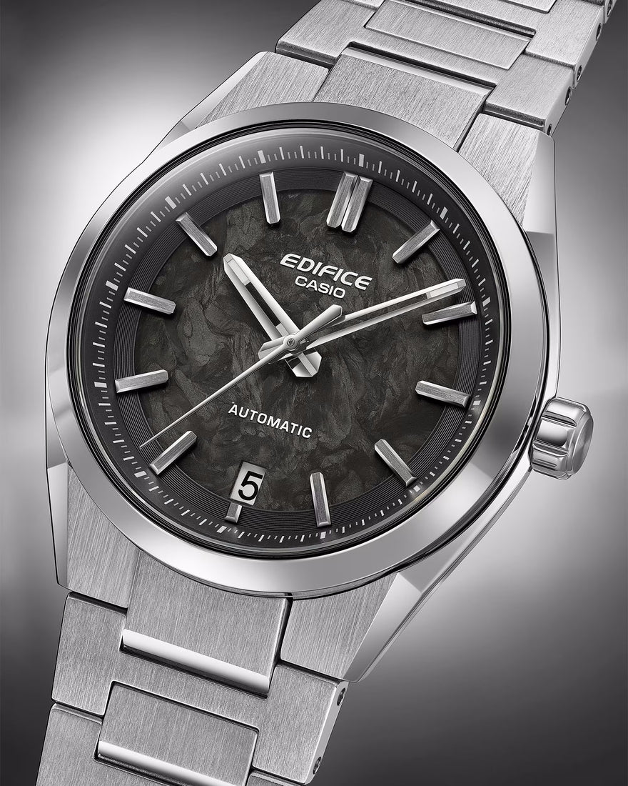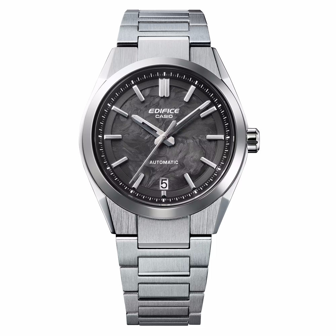 Scopri la novità del momento!! Il primo orologio Casio con movimento automatico della linea Edifice in questa versione EFK-100CD-1AER presenta un magnifico quadrante nero con una delicata texture grigia che cattura lo sguardo.