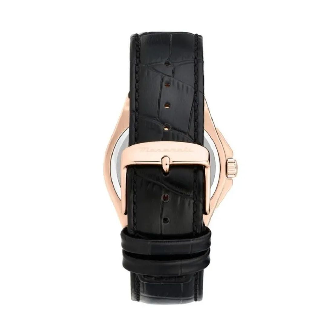 Orologio Maserati Velocità Slim è un segna tempo dal design moderno e sportivo, pensato per chi cerca eleganza e funzionalità in un unico accessorio. La cassa in acciaio inox dorata rosa da 40 mm si abbina perfettamente al bracciale in pelle nera, donando eleganza
