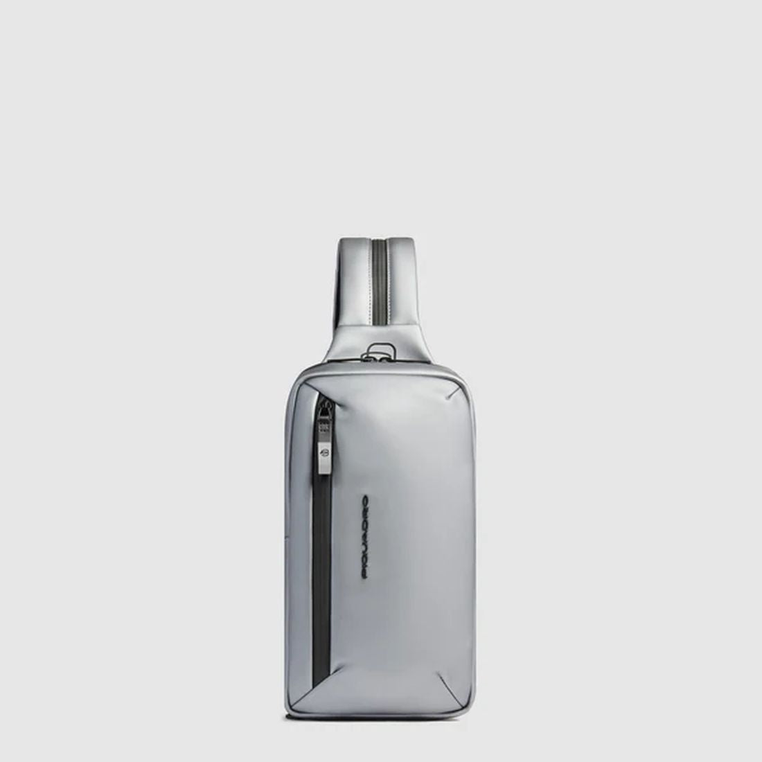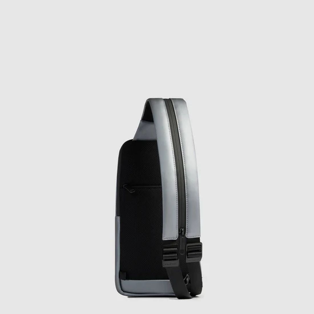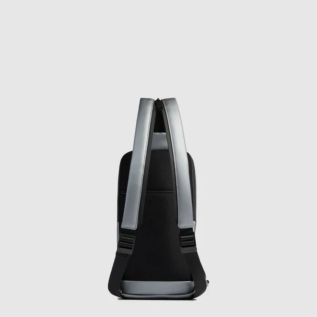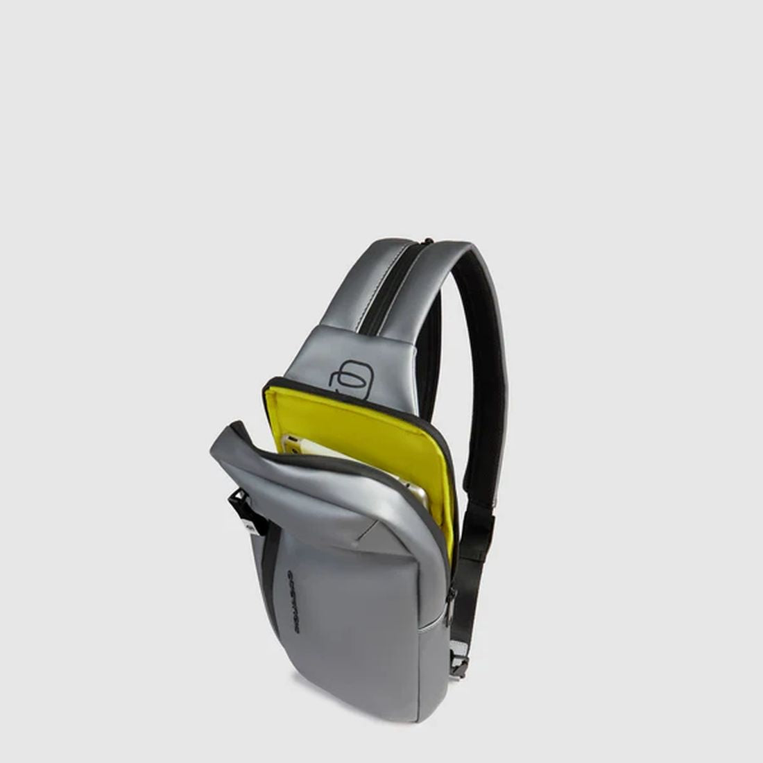 Zaino monospalla Piquadro della linea Corner in tessuto gommato porta tablet piccolo (iPad Mini, Samsung, Xiaomi) in tessuto gommato resistente all'acqua con protezione RFID e tasca per CONNEQU con protezione anti frode RFID. - Cod CA6466C2OW-MGR