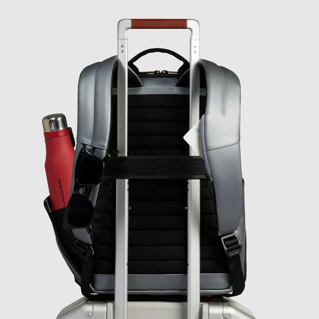 Zaino Piquadro della linea Corner in tessuto gommato resistente all’acqua adatto ai portatili da 14'', a due scomparti con cinghia pettorale, agganci per luce portatile da bici, tasca porta bottiglia o ombrello, tasca porta CONNEQU e protezione RFID - Cod CA6464C2OW-MGR