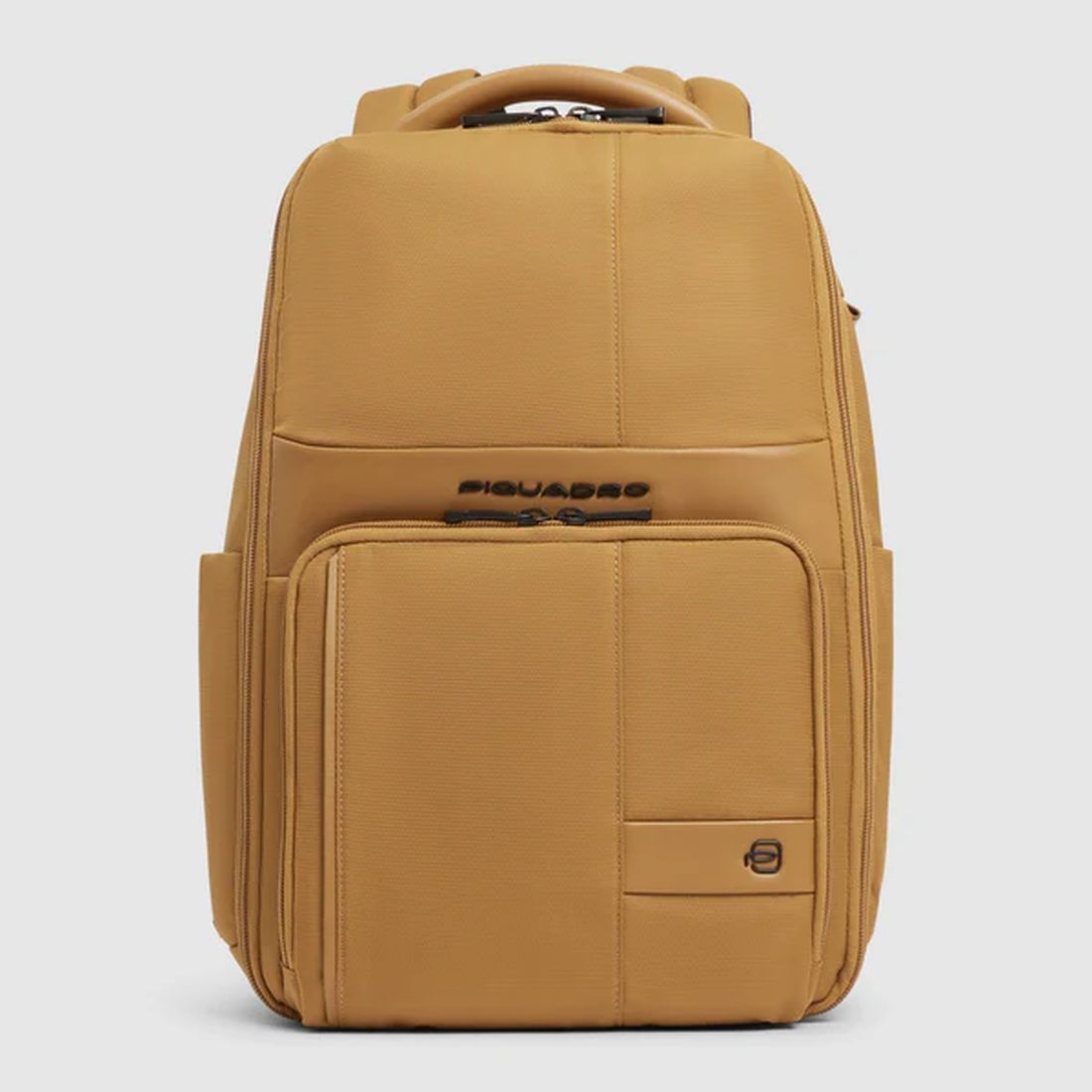 Zaino Piquadro della linea Corner, realizzato in tessuto gommato verde con trattamento idrorepellente. Dotato di due comodi scomparti, è ideale per trasportare i principali portatili da 15,6''. Include cinghia pettorale per maggiore stabilità, agganci per luce portatile da bici, tasca laterale porta bottiglia o ombrello, tasca dedicata al dispositivo CONNEQU e sistema di protezione RFID per la sicurezza dei dati personali. Disponibile in più colori - Cod CA6638W129-G2