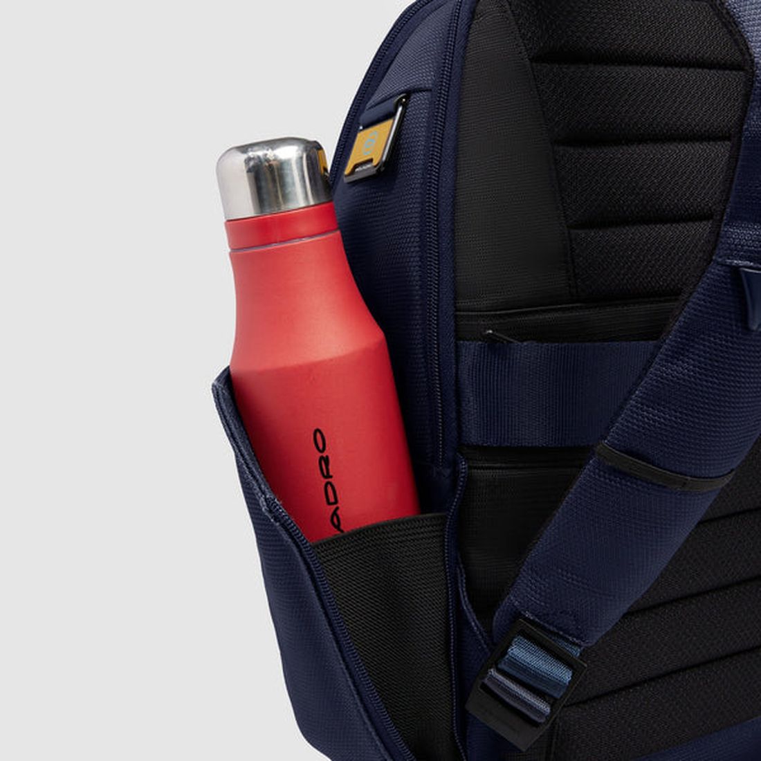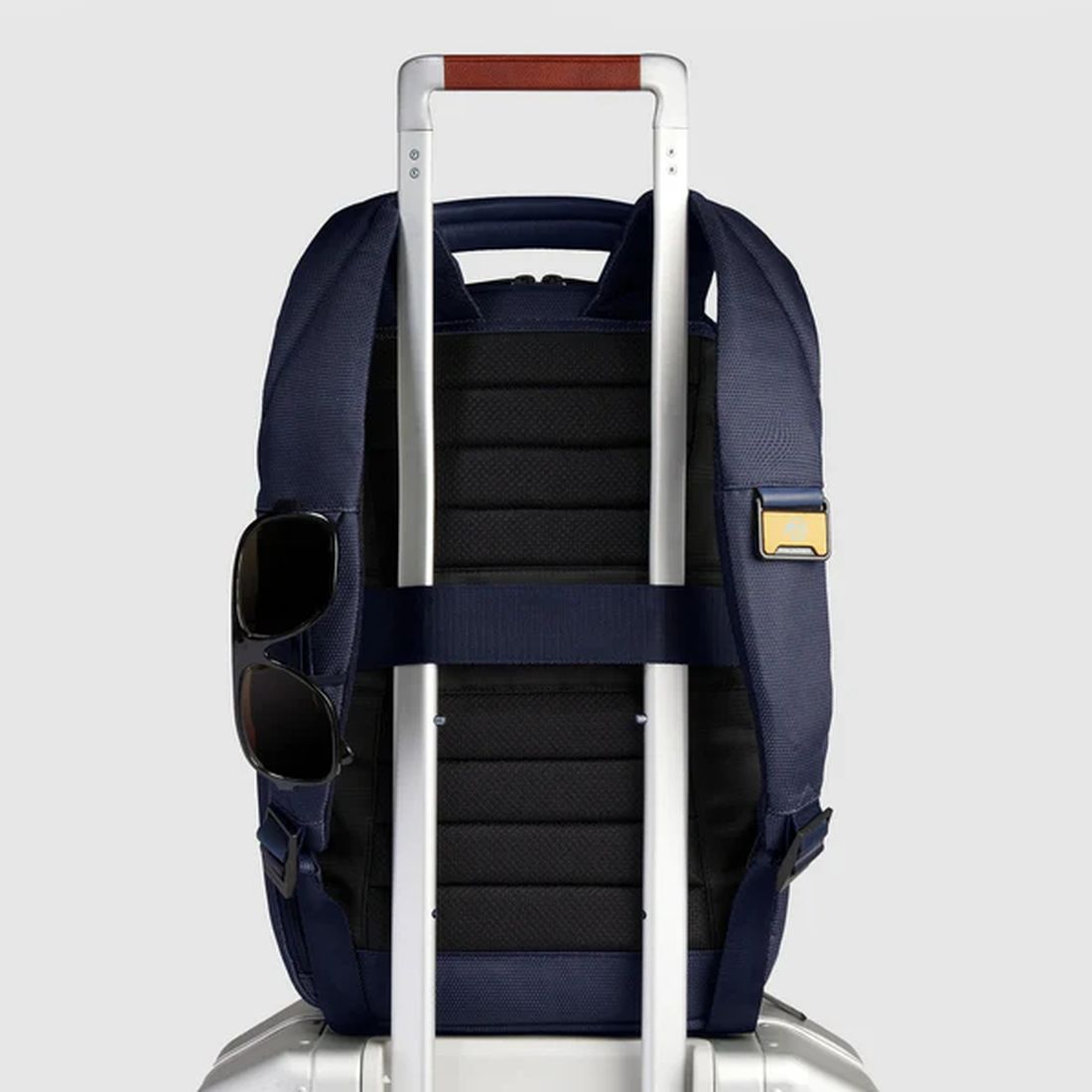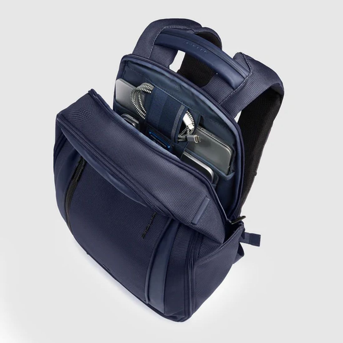 Zaino da lavoro Piquadro combina pelle e tessuto riciclato in un design moderno e funzionale, ideale per lavoro, città e brevi viaggi. È dotato di due comparti con spazio dedicato per notebook fino a 14” e iPad, protezione antiurto per il computer e tasche interne organizzate per accessori e dispositivi. Include inoltre tasca per AirPods®, porta occhiali, tasca power bank e porte USB e USB-C per la ricarica dei dispositivi. Con dimensioni 20 × 40 × 17 cm, capacità di circa 16 L e comparto viaggio con cinghie ferma abiti, offre praticità e comfort negli spostamenti quotidiani. Cod CA6927S143BM-BLU
