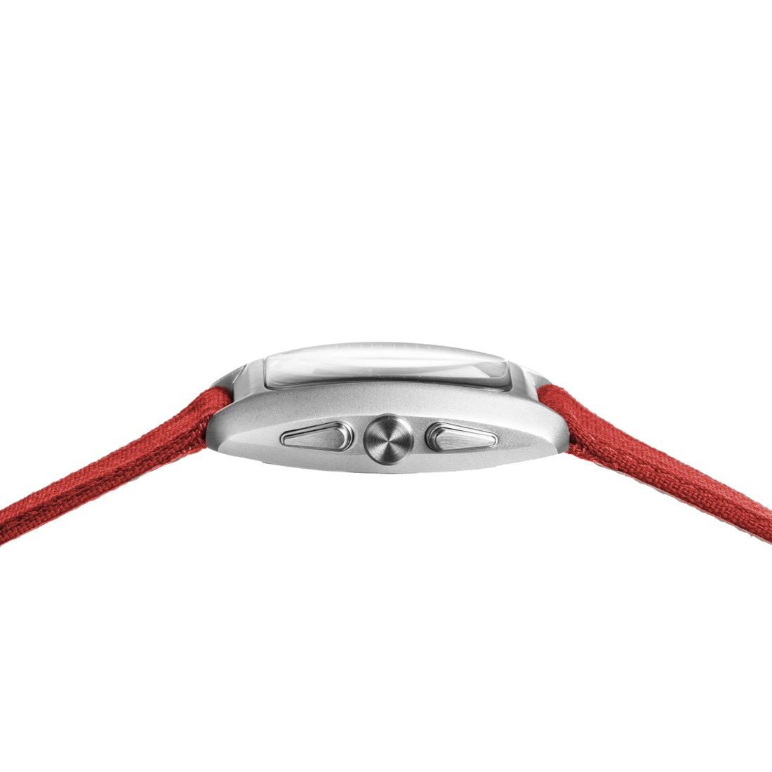 Il movimento al quarzo assicura affidabilità e precisione, mentre il cinturino in cordura rosso, con fibbia ad ardiglione, dona un tocco vivace e sportivo
