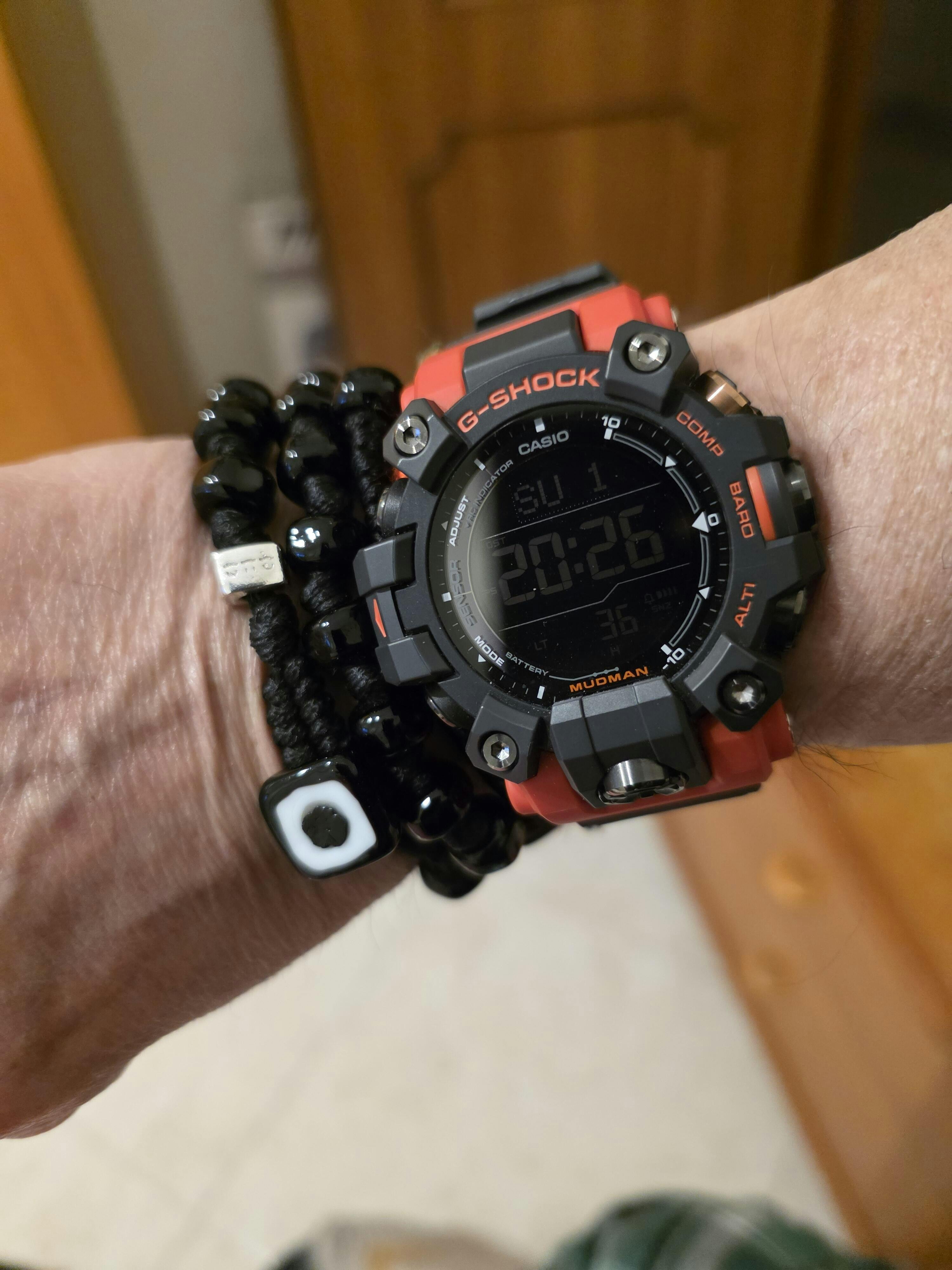 Orologio Casio G-shock GW-9500-1A4ER Mudman della linea Master of G composta da modelli capaci di resistere a sabbia, fango e immersioni. Cassa da 52,7mm in resina ecologica nera e rossa come il cinturino e guscio, struttura ultra resistente Carbon Core Guard, display negativo LCD a doppio strato.