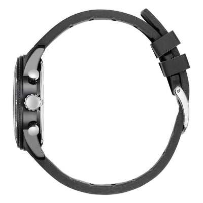Questo cronografo si distingue per la cassa da 40 mm e lunetta in acciaio, abbinata a un quadrante nero che crea raffinati giochi di luce, esaltato dai contatori bianchi a contrasto per un look elegante e dinamico.