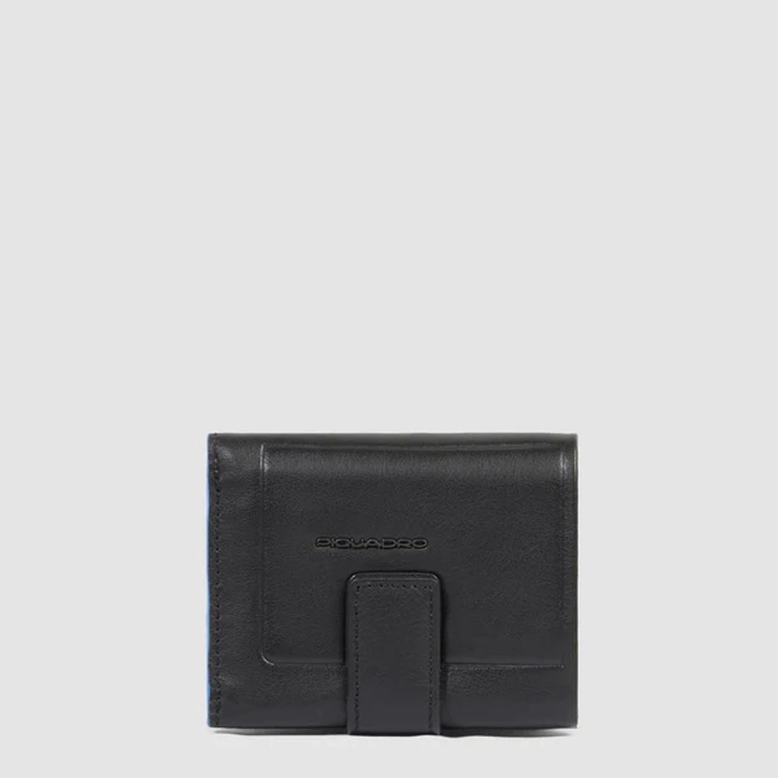 Portacarte uomo automatico in metallo e pelle, schermato con protezione RFID. Cod PU5957S138R-N