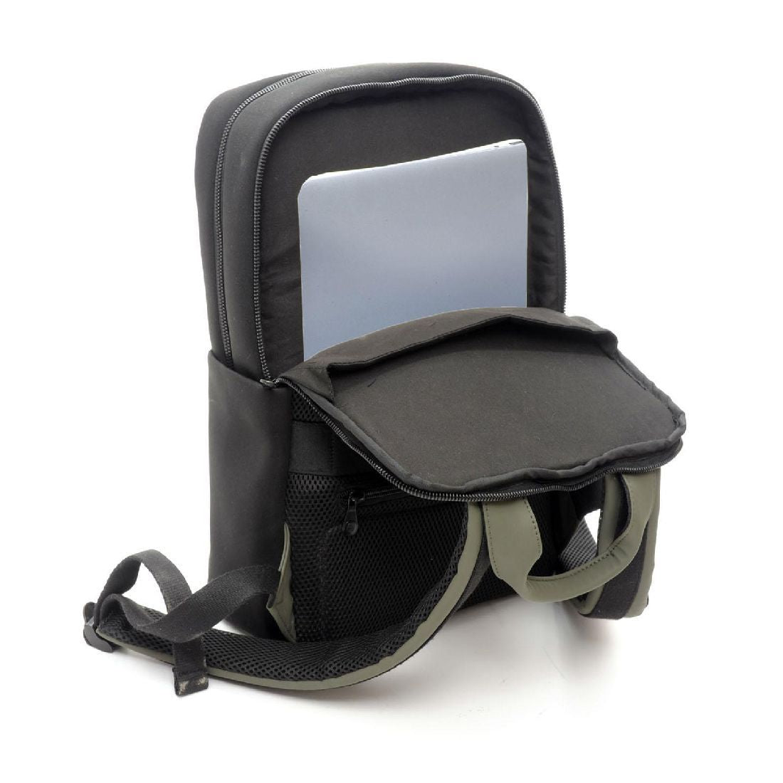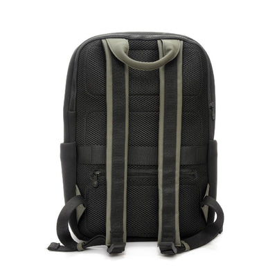Il design essenziale è arricchito da dettagli funzionali: tasca esterna verticale sul fronte, tasche laterali, uno scomparto centrale con zip a doppio scorrimento dotato di tasche interne. Sul retro, uno scomparto imbottito protegge i laptop fino a 15.6”, mentre il pannello traspirante garantisce comfort. Presenta una fascia per trolley con tasca zippata di sicurezza. Completano il design gli spallacci ergonomici e imbottiti, per il massimo comfort in ogni occasione.