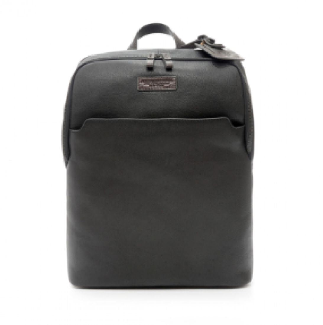 Zaino da uomo A.G. Spalding & Bros della linea Rag Bags, realizzato in pregiata pelle a concia vegetale di colore nero con dettagli marroni. Dimensioni di 30x38x10cm